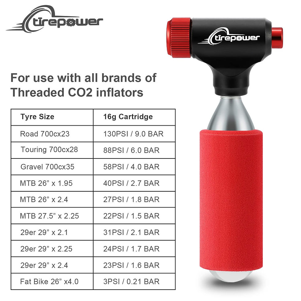 Threaded CO2 Cartridges, 16g for Bike Tire Inflators, Jar of