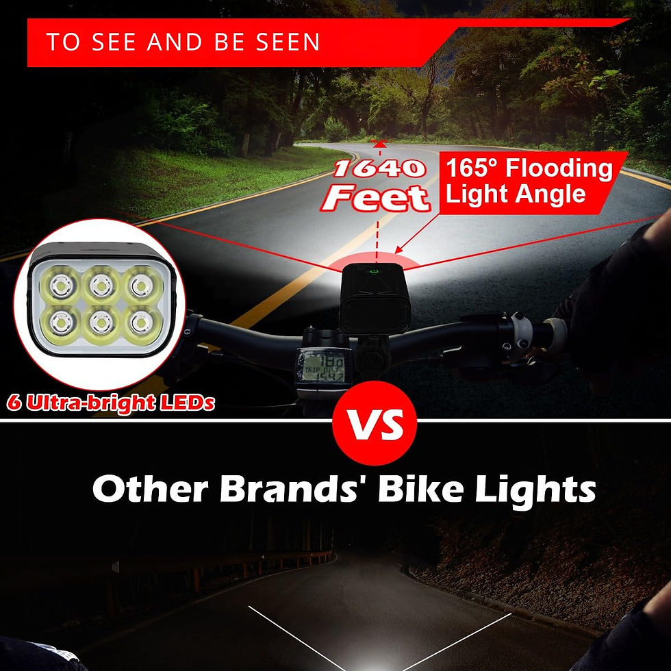 10000 Lumens Bike Lights Front and Back for Night Riding, 10000mAh