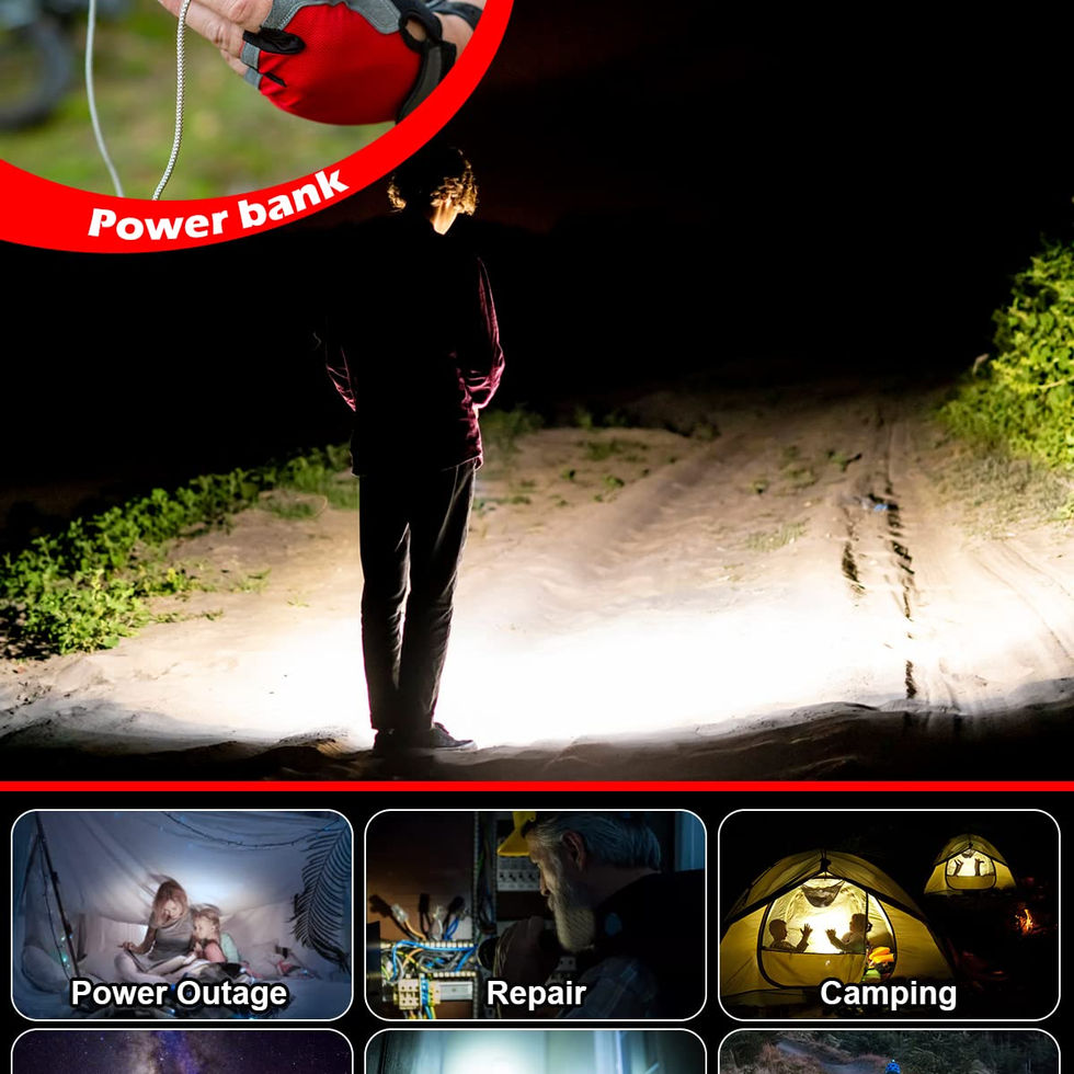10000 Lumens Powerful Bicycle Lights Front and Rear - USB rechargeable bike light set with 6 LEDs and a built-in powerful 10000 mAh battery pack. Max output is 10000 lumens with no external battery accessories needed. Runtime is up to 10 hrs at the brightest mode and 60+ hours at the low brightness mode, with a visible distance of up to 1640+ ft. It provides you with enough foresight to ride confidently. 5+5 Lighting Modes & 60+ Hours Runtime - This bike front light has 5 lighting modes: High | Medium | Low | Strobe | SOS. The rear bike light comes with 5 modes: Strong | Marquee Mode 1 | Flash | Marquee Mode 2 | Breathing. Our specially designed Marquee Mode can really draw more attention than other lights with a steady pattern. (Notes: When the bike headlight is turned off, keep pressing the switch button for 2 seconds to shift between 3 and 5 lighting modes.) 10000 mAh Rechargeable Batteries - The led bike light rechargeable feature allows you to charge both headlight and taillight from a USB port output. It can run up to 60+ hours with one-time charging. And it can also charge your cell phone and other device. This lights for bike come with smart charging circuit that automatically stops when the batteries are fully charged to prevent overcharging. Easy Installation & Visibility Up to 1640+ Feet - The sturdy 360° swiveling mount is easy for quick installation and release within 30 seconds, no tools required. The visibility distance up to 1640+ feet and 165° wide-angle beam flooding allow you to ride at night to see wider and further areas. As one of highly compatible bike accessories, it guarantee to fit any bikes, MTB, mountain bikes, road bikes, scooter bike, and ebike. 1 + 1 Extra Bicycle Headlight Bracket - The bicycle headlight is equipped with two types of brackets, specifically designed to fit different handlebars. These brackets allow you to effortlessly transfer the headlight between multiple bikes, no matter which bike you choose to ride. Additionally, the extra bracket serves as a reliable backup in case one is lost or damaged.