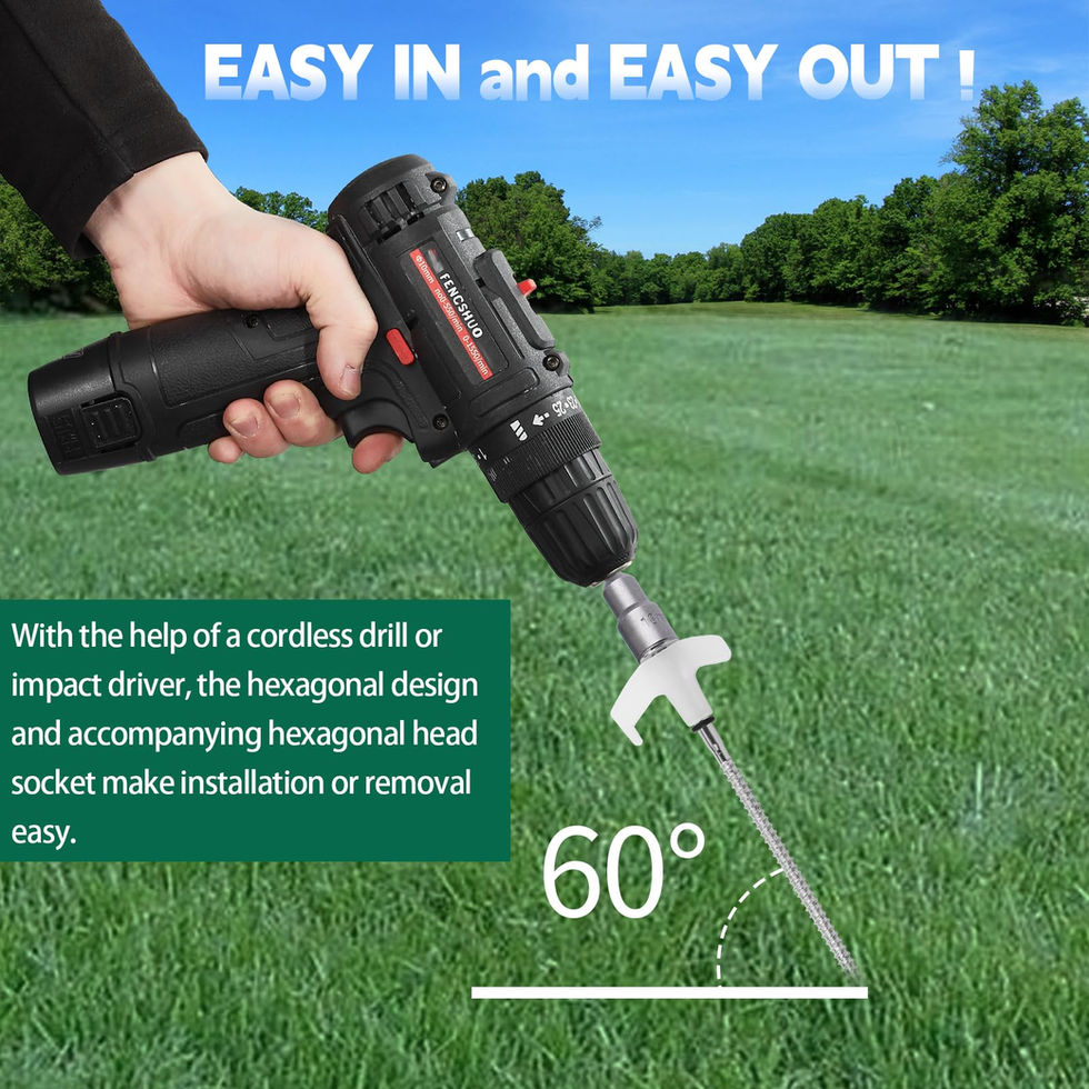 Package Include: 20 pc tent stakes, 1 pc hexagonal head socket, 1 pc portable suitcase. Very perfect for carrying when going camping. Strong And Sturdy: LISMODZ tent pegs are made of high-quality alloy steel, and the threaded design makes these camping pegs more gripping. They are tough, well-pointed, and will pretty much punch right through hidden gravel and rock. Sturdy and durable Easy In And Easy Out: With the help of a cordless drill or impact driver, the hexagonal design and accompanying hexagonal head socket make installation or removal easy. LISMODZ camping stakes are easy to drive in and haven't budged! Very easy to put in rocky soil Easy To Find In The Grass: The hook of the LISMODZ screw in pegs is made of bright colored plastic caps, which are very easy to find near the tent and prevent you and your family from accidentally tripping over when passing by. Meanwhile, plastic hook cap can help with quick installation during the installation process Simple But Functional & Anti-Rust: The LISMODZ tent spikes are finely crafted and have perfect length. The design is simple and functional. The anti-rust properties of the stakes will give you confidence that they will maintain their effectiveness over time