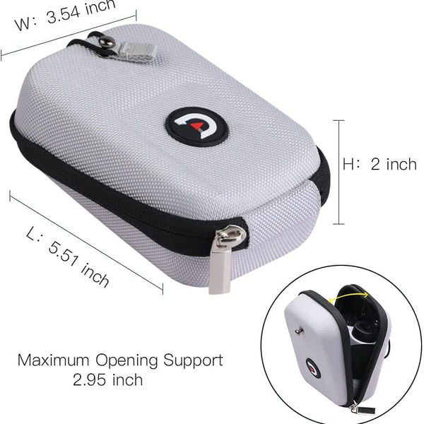Universal: This is a carry case(bag) for laser range finder or golf rangefinder. Does not include rangefinder. Achix Golf rangefinder case suitable for most rangefinder of different brands. Size: 4.7" X 3.1" X 2" Perfect Material: Golf rangefinder case made of Semi-hard EVA, nylon cloth, which is effective waterproof, shock-proof, pressure-resistant, moisture-proof. Interior is smooth and wear-resistant, protecting your rangefinder or storage items Convenient Carry: Rangefinder case has a small hook strap and carabiner, which can be hung on a golf cart (bag) or through a belt. This golf rangefinder case can also be used to hold golf balls, making it more convenient for you to play several rounds on the course Friendly Design: Designed with zipper and elastic. When you playing golf, you can only buckle the elastic band and do not need to close the zipper, which is very convenient for you to use the rangefinder. When you don't need to use the rangefinder, you can close the zipper Compatible With Fits Bushnell Tour V2/V3/V4/V5/PRO X2(201740)/PRO XE(201950)/202342/202442/202640/202645/202205/202207/202208/202460/202461/201660/201661/201760/201360/201361,Golf Buddy,Nlkon Forestry Pro/Forestry Pro II/COOLSHOT 80/80i/40/40i/20/20i/COOLSHOT PRO/COOLSHOFT AS,Callaway 300PRO.ROYAL LIONS,Voice Caddie,Tectecte,Shotsaver and more Laser rangefinders