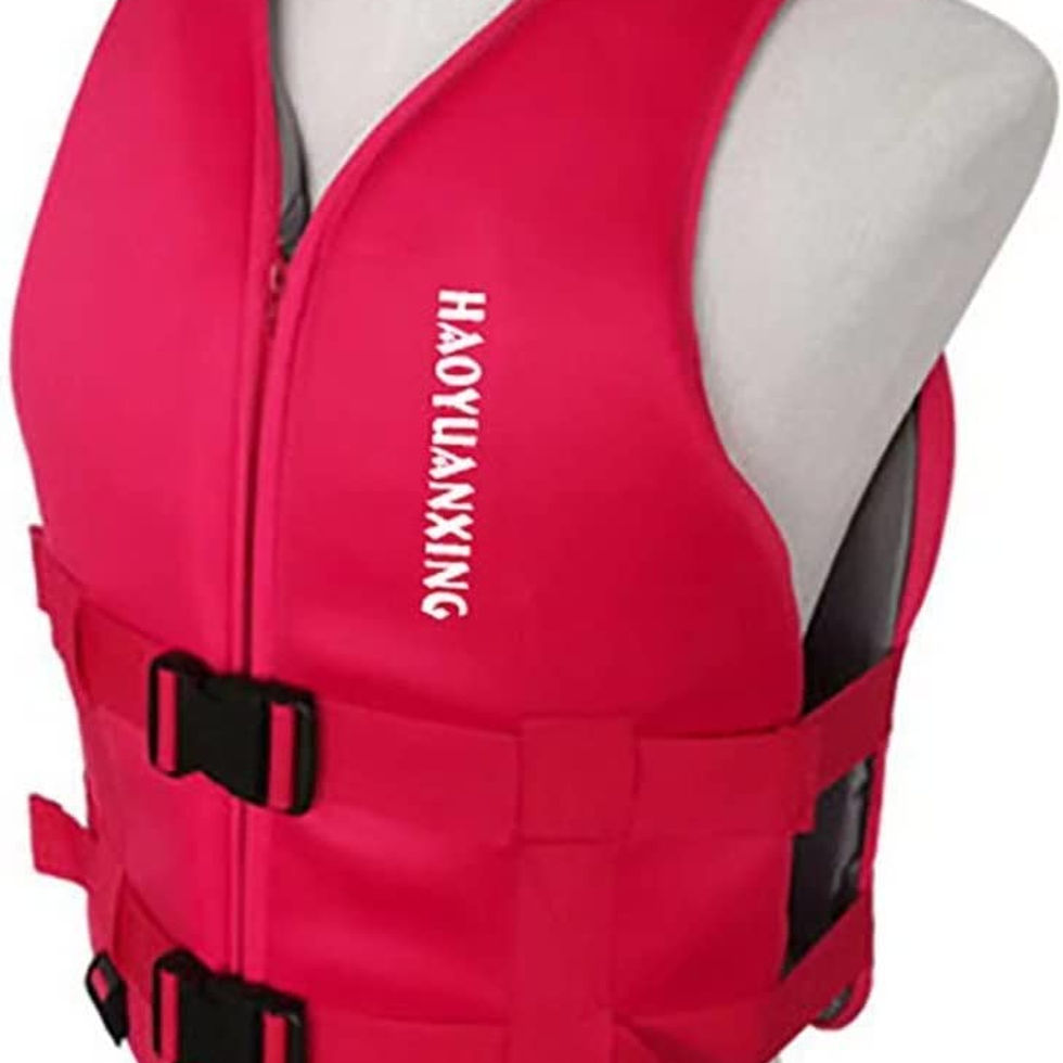 SAFETY DESIGN --Life jackets for kayaking adjustable waist design and quick-release buckles with 2 adjustable leg straps, which adds more safety for you when boating, kayaking, surfing, sailing and other outdoor water sports PREMIUM MATERIAL -- swimming vest is made from oxford cloth outer and lightweight EPE foam inner. Neoprene material making it drying very quick and easy to pack. Also the float jacket is light,compact and durable making it ideal for have a trip. Great choice as a float vest at beach and swimming pool,water park,boat,etc. DOUBLE WEBBING STRAPS -- Life jackets adults two durable solid webbing straps are used on the back, which can be adjusted for tautness, making it tighter to wear and safer to use, The smooth edging strips around the life jacket make the overall look simple and elegant, more fashionable and beautiful. CHOOSING THE RIGHT SIZE: The swim jacket designed to fit teenagers and adults weighing between 30-120kg/66-264lbs. Please measure against the swim jackets size chart before ordering to help you get a comfortable fit. WIDELY USE -- Mens life jackets adults suitable for water Skiing, Boating, Surfing, Sailing, Wakeboarding, Body boarding, Windsurfing, Fishing Ski, kayaking, etc. Comfort for all water spotrs.