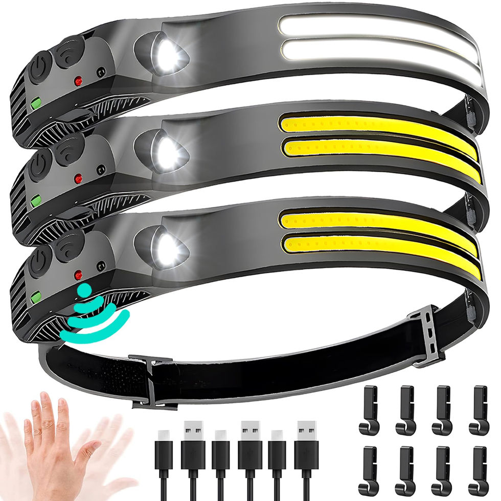 Dual led strip design, super brightness: With our new and upgraded 2.0 headlamp featuring dual led strip design, you can experience twice the lumens of a single led strip headlamp. Navigate through darkness confidently and instantly light up your surroundings with this powerful illumination. Six modes to choose from, custom for every situation: Tailored to meet your specific lighting needs, our headlamp offers six versatile modes for any situation. Whether you're camping, running, fishing, or enjoying a leisurely nighttime walk, easily select the perfect mode to suit your needs. Motion Sensor for effortless operation: Fumbling with buttons is a thing of the past with our Motion Sensor technology. Effortlessly control the headlamp with a simple wave of your hand. Enjoy the convenience of our gesture-sensing feature and say goodbye to any operational hassle. Lightweight and comfortable to wear: Designed for extended wear, our headlamp is both lightweight and comfortable. Constructed with high-quality materials, it won't cause any pressure or discomfort, even during long hours of use. Enjoy an unparalleled wearing experience with our top-of-the-line headlamp. IPX5 waterproof, ready for any outdoor environment: Don't let the weather dampen your outdoor adventures. Our headlamp is built to withstand various weather conditions, making it ideal for use in any environment. With an IPX5 waterproof rating, it continues to function optimally even in wet conditions.