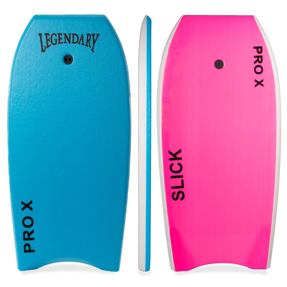 HEAT SEALED TECHNOLOGY: Hard slick bottom bodyboard with Lightweight Durable EPS core and soft comfortable EPE deck to provide better grip. GYN Trade Legendary Bodyboards are heat sealed ( Bodyboards are not glued ) The heat sealing process bonds the layers together and provides a stronger stiffer board that prevents bubbles. HIGH QUALITY FOR BEST PERFORMANCE: This quality bodyboard is designed for beginners and more experienced surfers. This model features a crescent tail, hard slick bottom, dual channels for premium speed and sturdy construction for serious waves. Due to the durable EPS core with Legendary Bodyboards you will enjoy the waves and have years of fun on the water. WRIST LEASH: Detachable wrist retention leash included. The leash is located at the bottom of the board. The leash helps you stay attached to the board and prevents the bodyboard from getting washed away from the big waves. SIZES: Sizes for every age group: 33 inches, 37 inches, 41 inches, 42 inches, 45 inches COLORS AND PRINTS: Variety of colors to choose from: (Dark Blue/Orange, Light Blue/Pink, Dark Blue/Pink, Orange/Green, Green/Orange, Gray/Green, American Flag, Rasta, Checkered, Flame, Zebra, Hibiscus).