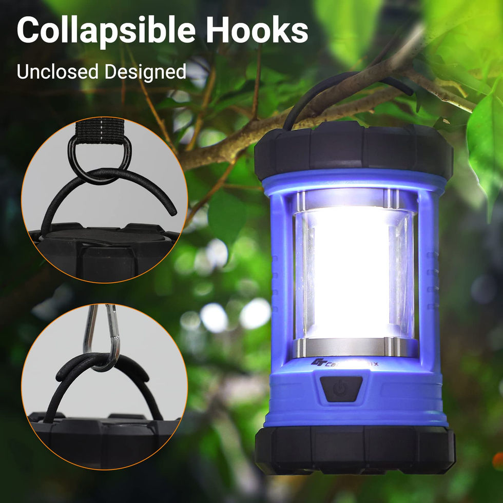 💡【Super Bright & Wide Lighting Range】If you’re looking for bright, this is the unit for you! CT CAPETRONIX camping lantern adopts double COB light panels and produces 3200LM high brightness flooding the whole 700sf space. This is an awesome rechargeable lantern that is very versatile from camping to automobile to home, keep one in your backpack, vehicle, and home for emergencies. 💡【5 Lighting Modes】Perfect camping gear fits different needs: It is incredibly bright, optional 3 brightness levels are helpful. Red light mode helps for stargazing and night observation. Additional red blinking/SOS mode allows you to give out a signal and get help from around easily when needed out in the wilderness or in other unpredictable situations. 💡【Rechargeable & Phone Charger】Built-in 4600mAh rechargeable battery provides long runtime, you could plug provided Type-C cable into your car's USB port or laptop for recharging and no need to replace battery. Even better, this led lantern has a USB port out for charging your mobile or other devices, making it great as an emergency light during power outages, hurricanes, earthquakes, indoor and outdoor usage. 💡【IPX4 Waterproof & Well-Built】Do not equip yourself with inferior cheap camp light. This durable lanterns battery powered led can resist rain and splashing water in all directions. Constructed with military-grade ABS material, impact-resistent rubber top and bottom ends provide full protection from dropping. Steady rubber base also won't slide/fall itself easily on slippery, uneven surfaces. 💡【Compact & Collapsible Hooks】The camping lights & lanterns is a portable size(7x4 in) and lightweight(1.2lb), compact and very handy to have around. The unique double handle at the top folds down flat, you could easily hang this on any tree limb, camping rack or inside the tent. Absolutely no regrets about adding these to your emergency preparedness! Relax to buy and enjoy 2-YEAR warranty.