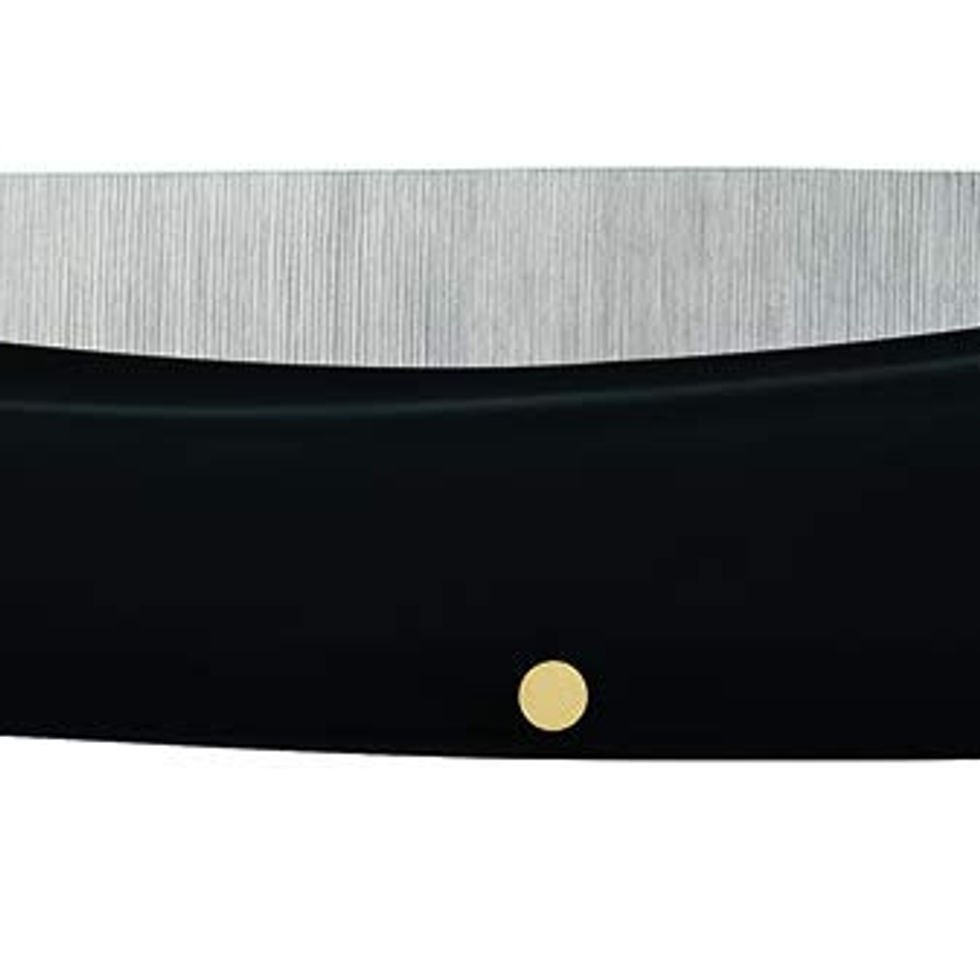 Tru-Sharp surgical stainless steel blade Etched skinner blade; jet-black synthetic handle Great pocket knife for everyday situations, the outdoors, hunting, and hiking Length 4.63 inches closed and 3.4 ounces Limited Lifetime Warranty
