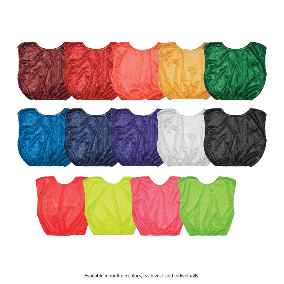 100% nylon micro mesh fabric is lightweight and breathable for comfortable wear throughout a game Reinforced neck, armholes and elastic bottom offer greater durability, a more comfortable fit and easy to take on and off during play Adult size Sold in packs of 12 Color: Neon Pink