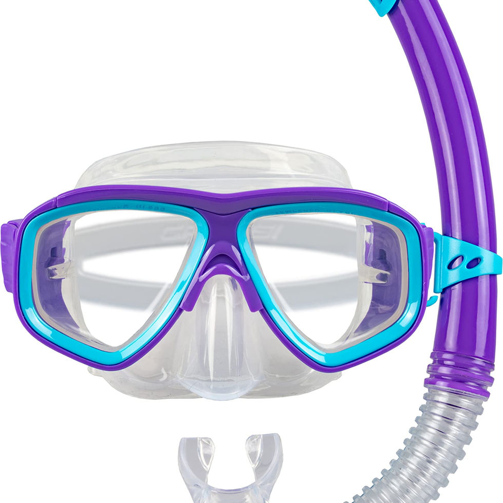 The Rocks Kids Set is Cressi's answer to the price conscious parents who need reliable snorkel equipment for their kids for vacation use. We offer with this line the solution for adventurous kids who need decent quality for all day use in the sea. The Rocks Mask lenses are made from tempered glass and the dual window design provides an excellent and wide field of vision. Easy-to-reach nose pocket for ear equalization. Skirt made in soft silicone to ensure comfort and a perfect seal. The Snorkel features a splash guard designed to prevent splashed surface water from entering inside the snorkel barrel. Practical low purge valve to easy blow out residual water. Easy-to-use snorkel keeper for attachment to the mask. Silicone mouthpiece. Soft and comfortable open-heel foot pocket with easy to adjust buckles to follow the kid’s growth. The dual composite blade provides excellent power and energy-saving efficiency. The buckles come with a large-thumb-loop for easy donning and doffing. A practical net bag is included in the set.