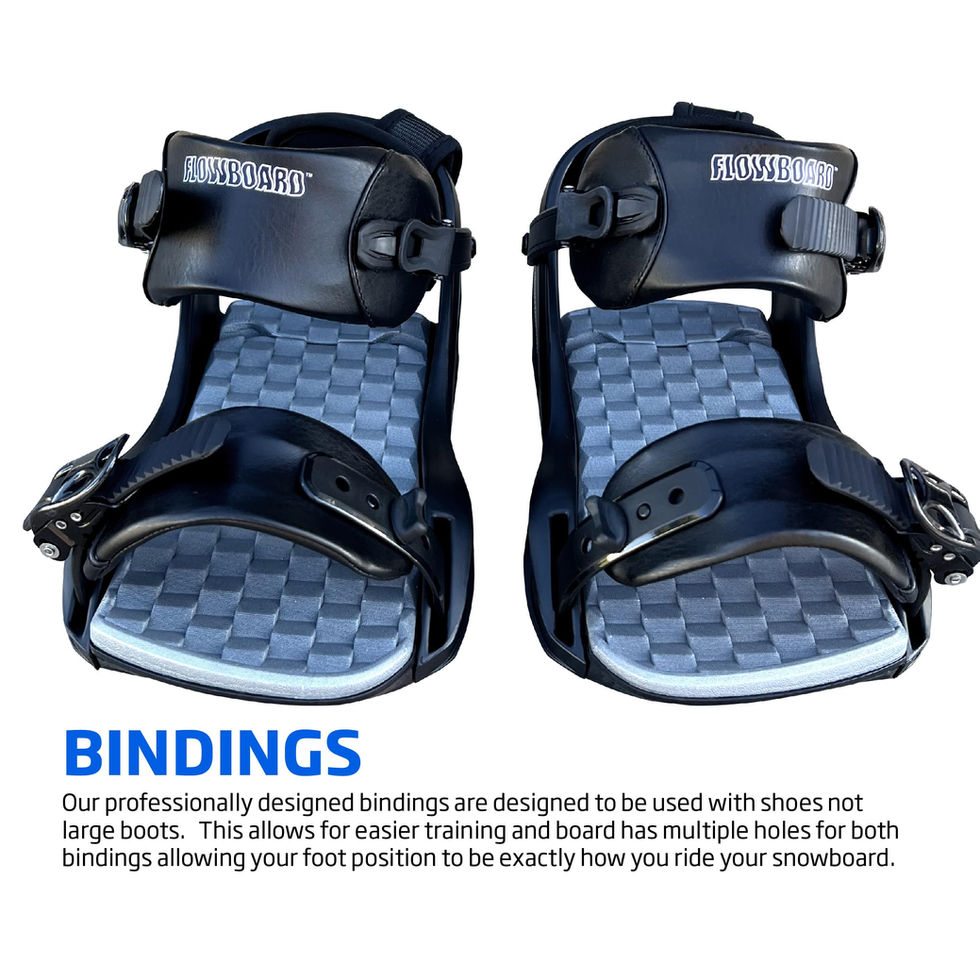 BINDINGS – Our professionally designed bindings are designed to be used with shoes not large boots. This allows for easier training and board has multiple holes for both bindings allowing your foot position to be exactly how you ride your snowboard. QUICK AND COMFORTABLE – Our bindings are designed with extra padding on the souls and ankles. Equipped with two quick release binding straps making it quick and easy to get in and out of the bindings. COMBINE TOGETHER – You can use our bindings on your own snowboard to save some money. The mounting holes on the bindings are same size and separation as all snowboards. You can also join the bindings together with our Flowboard snowboard or Flowboard Trampoline board. CAUTION – Always make sure you have adequate open space when training. We recommend an area 12 foot square. Start small and increase your skills gradually.