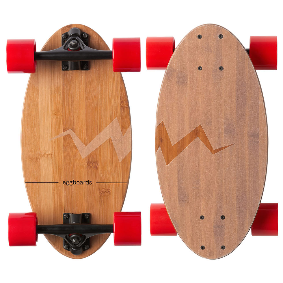 PORTABLE: it's just the smallest longboard around! 19 inch skateboard deck fits everywhere (backpacks, lockers, public transportation, etc.) while still riding like longboards SMOOTH: 7 inch skateboards trucks usually mounted on longboards skateboard provide a smooth and chill ride making it an ideal cruiser board. STABLE: soft 76A longboard skateboard wheels make this compact longboard solid and sturdy when cruising over bumps and cracks on the road. Perfect skateboards for beginners 100% DURABLE BAMBOO: Made from 6 full plies of robust bamboo wood that doesn't chip over time unlike normal Canadian maple skateboards DESIGNED IN CALIFORNIA: created in San Francisco and tested by cruising on the boardwalks of Venice Beach and Santa Barbara the Eggboard is perfect for adults, teens and kids.