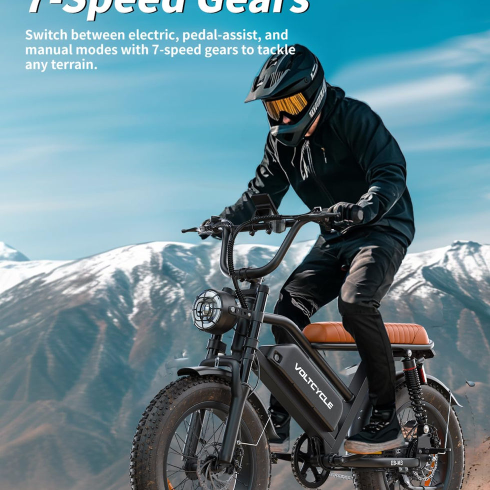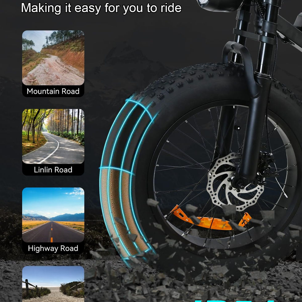 ✅Powerful 1000W Brushless Motor: Experience unmatched power with the Fat Tire Electric Bike. Featuring a high-speed 750W motor with a peak of 1000W, it reaches speeds up to 28MPH. Whether climbing hills or navigating rugged terrains, this motor delivers the strength and reliability to tackle any adventure with ease. ✅Impressive Long Range & Removable Battery: Equipped with a 48V 18.4Ah lithium-ion battery, this electric bike provides an impressive range of 40-60 miles in pedal-assist mode and up to 40 miles in full electric mode, depending on terrain and rider conditions. The removable and lockable battery ensures convenient charging at home or the office and charges in just 7-8 hours. ✅ Versatile Riding Modes & 7-Speed Gear System: Enjoy three customizable riding modes: Pure Electric, Pedal Assist, and Normal Biking. Coupled with a 7-speed gear system, you can easily shift for different riding conditions—whether cruising through the city, taking on mountain trails, or enjoying a beachside ride. The perfect ebike for every adventure. ✅Comfortable & Spacious Seat for Two: Designed with an extra-long seat, this electric bicycle comfortably accommodates two riders, making it perfect for family or partner rides. The durable aluminum bracket supports up to 330lbs, ensuring stability and safety for both passengers and riders. ✅LCD Display & Enhanced Safety Features: Stay informed with the digital LCD display showing real-time speed, battery level, riding mode etc. Equipped with dual front suspension for a smooth ride, a high-brightness front light, and a rear reflector, this electric bicycle for adults ensures a safe, enjoyable experience both day and night.