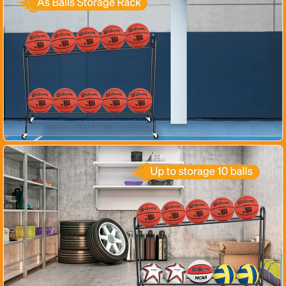 TILT BASKETBALL TRAINING STAND : Number of 5 pitches for a group with tilting top, The basketball rolls downward, suitable for 3 point shoot training. Flat design lower layer, also can store balls. A total of 10 standard basketballs can be stored. REMOVABLE & IDEAL FOR MULTI-OCCASIONS : The ball racks can move it easily. Equipped with 4 sturdy multi-directional wheels (including 2 lockable). It is ideal for the garage, home, school, Basketball training ground and more other places. STURDY & DURABLE : The ball stand is made of high-quality materials, carefully processed and designed, it is strong, wear-resistant and durable. EASY INSTALLATION & SUITABLE SIZE : (L) 49.2inch/ 4.1ft * (W) 18.2inch/1.51ft * (H) 38.5inch 3.2ft, 5 minutes to assemble according to the instructions label guidance. FRIENDLY CUSTOMER SERVICE: If you have any questions, please contact us according to the guidelines in the manual. We commit 1-YEAR HASSLE-FREE WARRANTY with replacement or money back, friendly service will be there for you.
