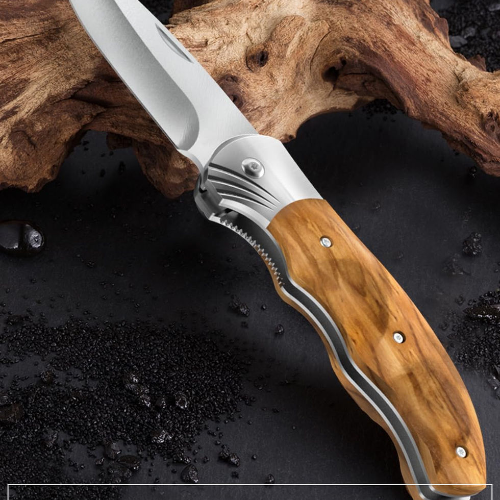 Durable Functionality: Folding knife is a remarkable piece of gear with a total length of 8.26" and a weight of just 5.29 oz, making it perfect for everyday carry. 3.54" high-carbon steel (440C) blade, ensures long-lasting sharpness and durability. Its reliable liner lock ensures safety during use, while the ergonomic wood handle offers a comfortable, natural grip, combining strength with a warm, pleasant feel. Compact & Lightweight Design: This gentleman's knife is ideal for men and women who need a dependable and hand tool for various activities. This reliable multipurpose knife is perfect for hunters, campers, fishermen, cowboys, and hikers who require ae for survival and tactical situations. It's a wonderful knife for everyday carry. Sharp Pocket Knife: The folding flipper style and wooden handle add to its utility and safety. Outdoor enthusiasts will appreciate its razor-sharp edge, and collectors will find it a unique and attractive addition to their tools. Easy to carry in your pocket, this collectible knife is the best personal cutter for any situation. Versatile Knife: The camping knife is a must-have for survival, outdoor, urban, home, tactical use, and EDC. Perfect for hunting, fishing, hiking, and backpacking, it's ideal for military tasks, field work, and self defense. Whether for protection, construction, unboxing or emergencies, this mens knife ensures you're always prepared. It is suitable for bushcraft, travel, car and emergency situations. Best Knife for EDC: Portable knife makes it easy to carry anywhere, and its versatility ensures it can handle a wide range of tasks, from every day chores to survival situations. Navajas para trabajo. Los cuchillos de caza y el cuchillo táctico son perfectos para defensa personal y actividades al aire libre. Cuchillo de supervivencia, bolsillo. Navajas para hombre.