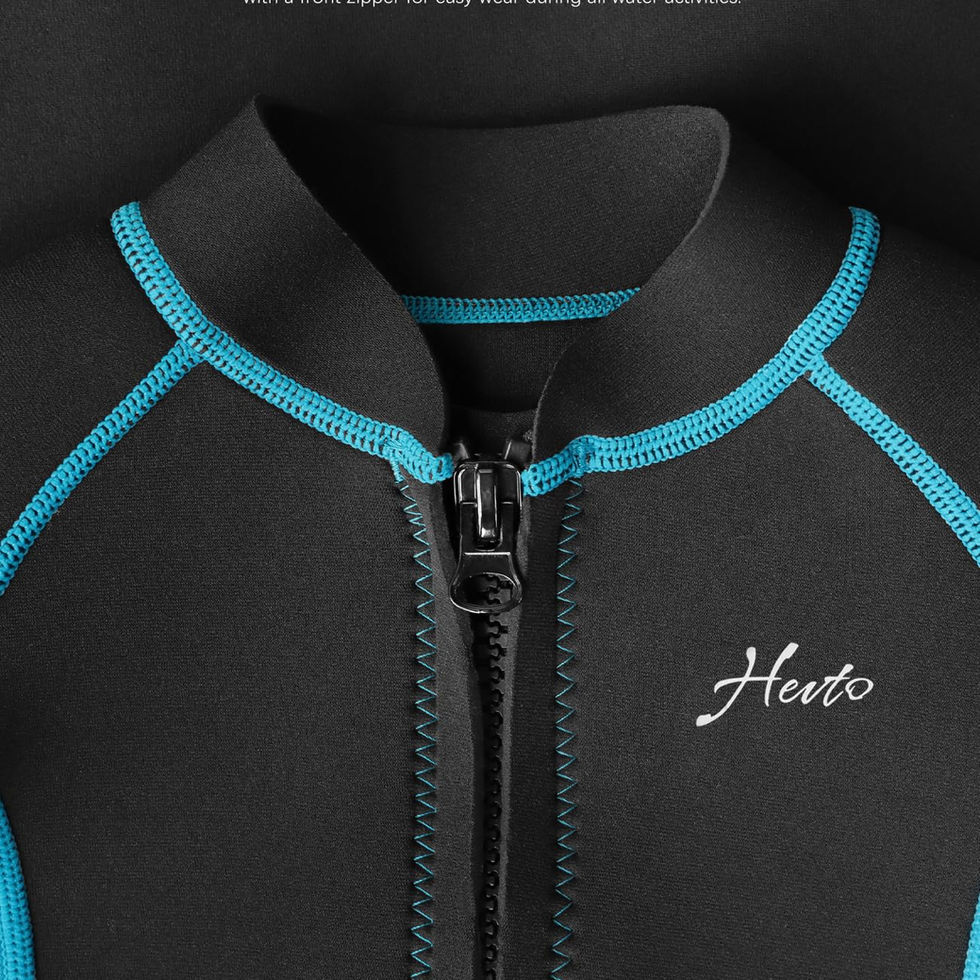 Safety and Utility: The Hevto kids wetsuit is crucial for enhancing safety and comfort in water activities. Ideal for kids wetsuit for boys and girls, it helps maintain warmth in cold waters and provides necessary buoyancy. Suitable for swimming, snorkeling, and diving, this shorty wetsuit is a must-have for young water enthusiasts. Comfort and Fit: Constructed from 2mm soft neoprene, the Hevto kids wetsuit shorty ensures a comfortable, snug fit that doesn’t restrict movement. The front zipper design enhances flexibility and ease of use, making it an essential gear for children engaging in various water sports. Protection Features: The Hevto children wetsuit offers excellent protection against the cold and harmful sun exposure, while also preventing sunburns and abrasions. It’s versatile for all water-related activities, from beach play to more adventurous pursuits like surfing, paddleboard and kayaking. A reliable choice for wet suit for kids in cold water. Stylish Visibility: With its unique wing-shaped shoulders and blue stripes from armpits to thighs, the Guard series offers excellent visibility underwater and on the surface. The smooth, fashionable design will surely be loved by children, embodying parental love. Parental Assurance: Parents' love for their children is unconditional, which is why we created a wetsuit reflecting that care. Choosing the Hevto wetsuit means ultimate protection and comfort for your child. Rest assured, your child will be safe and comfortable during their water adventures.
