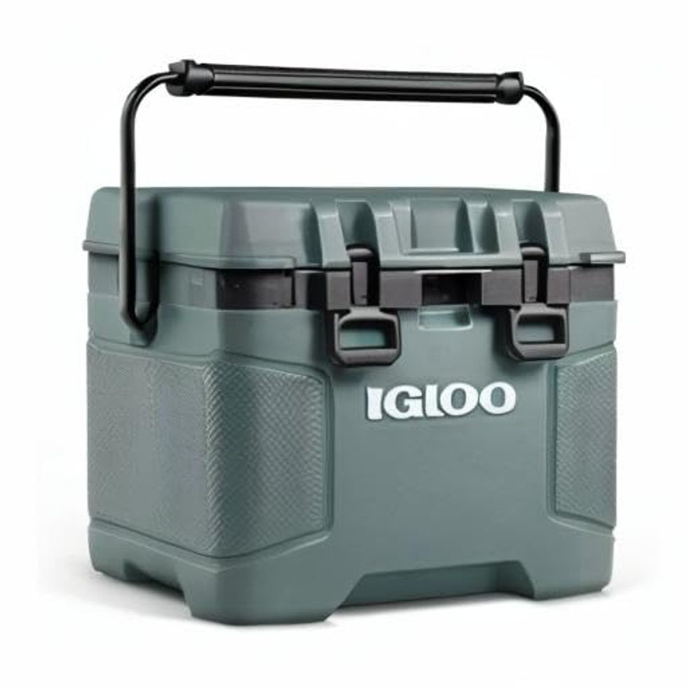 Extra-wide swing-up bail handle features diamond-textured grip for a secure, comfortable hold Heavy-duty blow-molded construction provides advanced durability Extra-thick 1.5-inch foam-insulated walls & insulated lid for extended ice retention Cool Riser Technology improves cooling performance by elevating cooler body away from hot surfaces The first Igloo cooler to feature the Sure-Lock rubber latches that make it a cinch to fasten with two fingers & provide a secure closure to lock in the cold