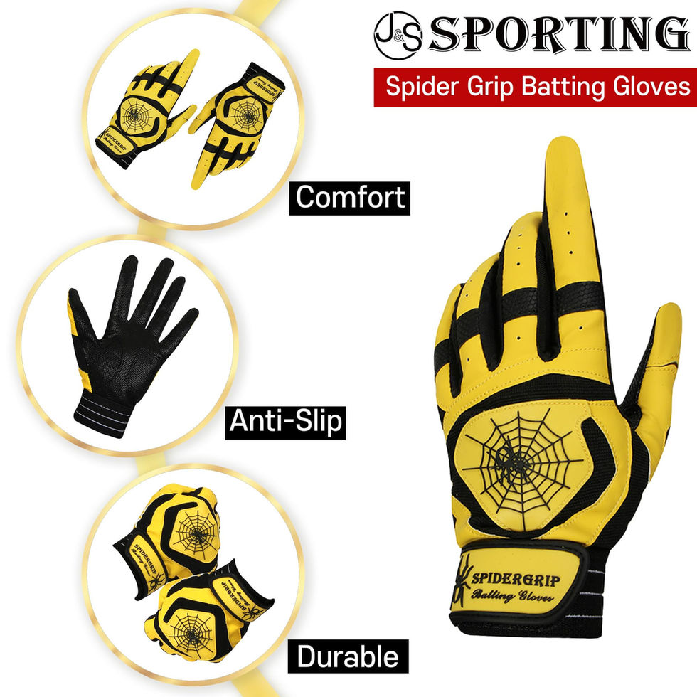 J&S Sporting Spider Grip Baseball Softball Batting Gloves for Mens