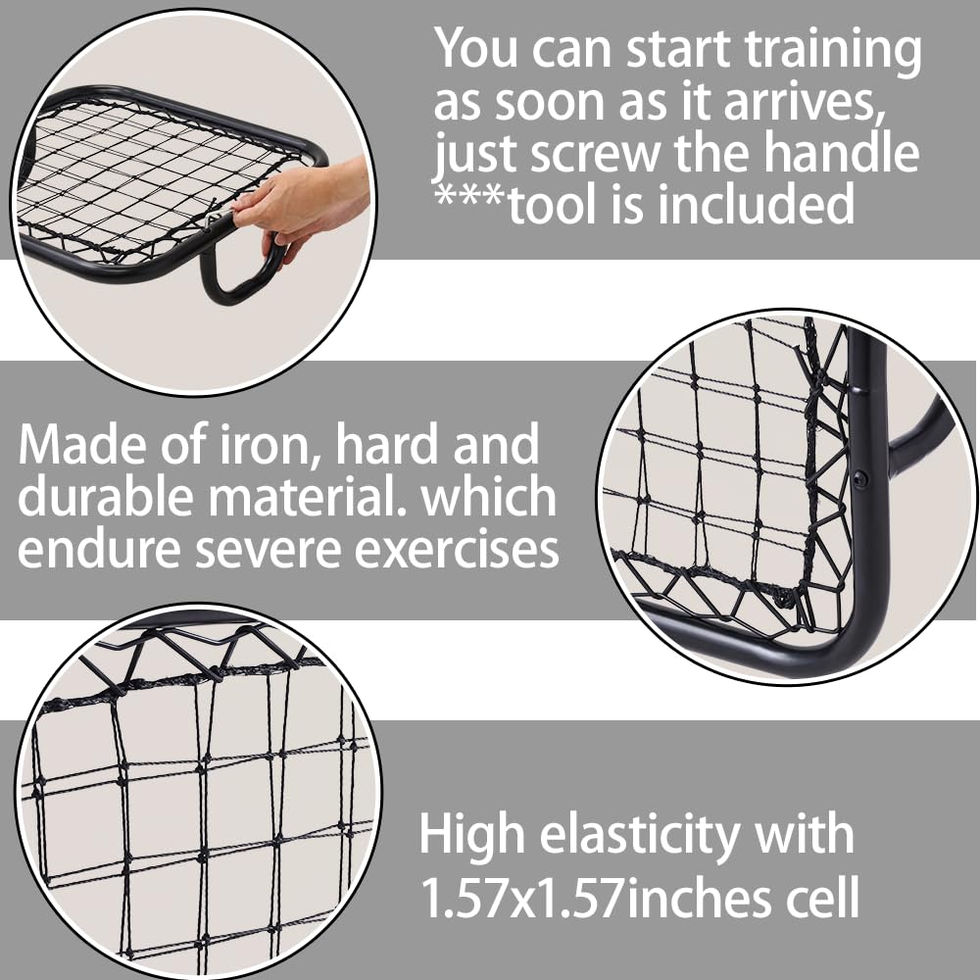 Football Training Equipment for Goalkeeper: Soccer rebounder board handheld is sized as LxW 19.7x19.7in / 50x50cm with wooden handles, easy to hold, and perfect equipment for practicing precise reactions and closerange saves during goalkeeper coaching sessions Lightweight & Sturdy Training Gear: Upgraded soccer rebound net with handle is lightweight as 3.88lbs, easy to handle and grasp without being injured the wrist and the handle is made of wood, easy to keep grabbing rather than metal handles and detachable Improving Agility, Instantaneous Reactions: Goalkeeper reaction training equipment create different drills and training techniques by generating unpredictable returns on a one-to-one basis practice in close-range practice and mprove agility in number of trainings for control and reaction speeds in goalkeepers and outfield players Iron Frame with Rust-Proof Coating: Made of heavy-duty metal with strong polyester net, and you can enjoy training in all-weather and it can provide long-lasting performance and as stated the gripping handle is made of wood For Multi-sport Handheld Rebounder: For versatile use such as net ball, tennis, volleyball, basketball and soccer and this equipment is not only suitable for goalkeepers to improve their reaction and close range saves but also a good choice of practicing passing and first touch