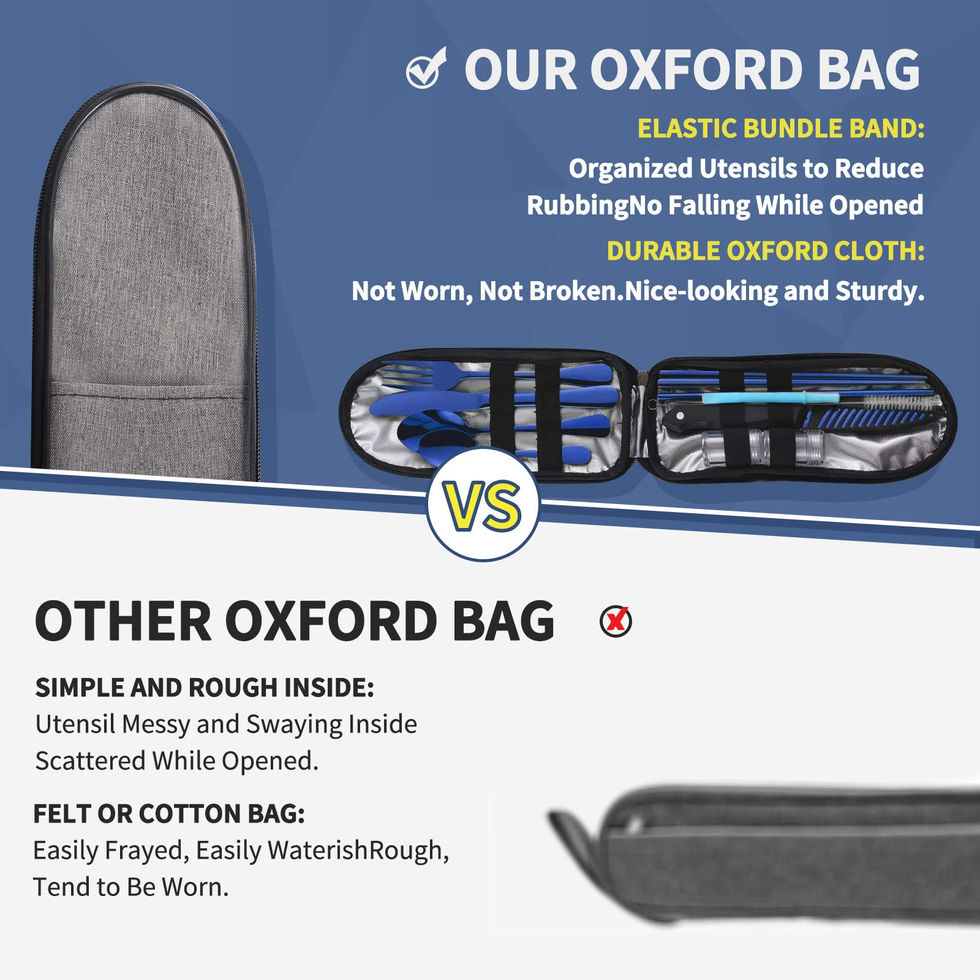 The 10-Piece Travel Camping Cutlery Set:an zipper-case with a set of eating basis of a dinner fork, a dinner knife, a dinner spoon a tea spoon and a special included sheathed steak knife, two mini spice jars ,chopsticks, cleaning brush, and straight straw with silicone tips. The elastic bundle bands inside help to organize utensils stay good in the bag and avoid messy and falling while zipper opened.travel utensils with case Travel Camping Cutlery Set: Perfect for on-the-go meals, this portable travel cutlery set comes with a knife, fork, spoon, chopsticks, and straw, all neatly packed in a compact case. Eco-friendly and Easy to Clean: Say goodbye to disposable utensils and opt for a greener choice. These reusable utensils are not only eco-friendly, but they're also easy to clean and maintain, making them the perfect choice for outdoor and indoor use. Reusable Utensils: Made with high-grade stainless steel, these reusable utensils can be used multiple times, making them a sustainable and eco-friendly option. WORRY FREE : Your satisfaction is our highest priority. If you have any questions, please click seller nickname then click "Ask a question" to contact us. Logcow offers a 60-days refund or replacement.