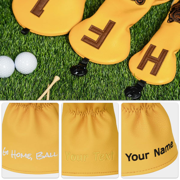 Personalized Gift: Make it personal by customizing embroidery each golf club cover with your name, company logo, or special message - crafting truly one-of-a-kind golf head cover. Name Or Text: optional color and input text by clicking “Customize Now”. Embroiderer staff will adjust for best appearance. Professional Factory: Strong factory has a full range of colors embroidery threads and various fonts to choose from, for more customization needs, please contact us! High-quality Synthetic Leather Lining: High-quality leather is the basis of a quality sports fan golf club head covers, prevents creasing and deformation, and easy to wipe to keep clean. Dense plush lining protects your golf clubs and driver from collisions and damaging movement. 【Universal Fit Golf Clubs】Golf club covers fits up to 460cc driver, are superior fit most of golf club brands and allow the clubs to sit compactly in the bag for a secure fit. Fits all modern golf clubs set woods including Callaway, Nike, Big Bertha, King Cobra, Taylormade, Titliest, Ping and more.
