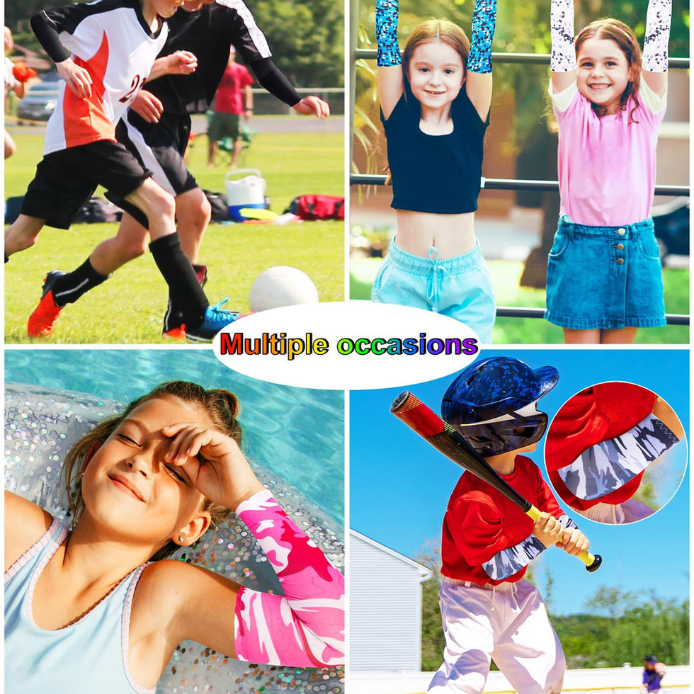 Select size after measurement: this kids arm sleeves comes in multiple sizes to choose from. The recommended age is for reference only. Please select size according to the actual measurement size of your kid's arm. Please refer to the size detail chart picture for specific dimensions, which will help you choose the appropriate size for your child Comfortable material: these arm sleeves for kids are made of quality nylon and spandex material, soft, comfortable, lightweight and easy to store and carry, elastic and not easy to break, cool, breathable and suitable for a long time wearing Sun UV protection: these children sports arm sleeves can offer your kids sun protection and UV protection and cooling. Wearing the arm sleeves for children participating in outdoor activities can give protection to their skin from sunburn Wide application: these kids arm sleeves can be used as basketball arm sleeve, baseball arm sleeve, golf arm sleeve, football arm sleeve, volleyball arm sleeve. And also suitable for other outdoor activities, such as fishing, cycling, hiking, running, camping, motorcycling, climbing, hunting, gardening, travel and so on Package includes: the package comes with 12 pairs of kids arm sleeves, enough quantity and styles to choose from, convenient to match with different outfits of your child or daily use and replacement