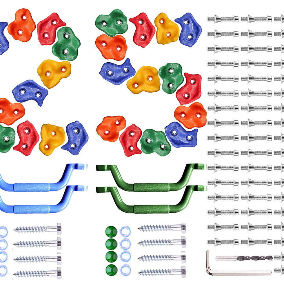 Rock climbing will motivate children to exercise, improve their agility, endurance, flexibility, and strengthen the balance of the body, just have fun with our pig climbing holds Made with durable weather resistant plastic construction, each Pig rocks has 2 mounting holes for a secure attachment to the climbing set Made with durable weather resistant plastic construction, each Pig rocks has 2 mounting holes for a secure attachment to the climbing set Package Included: Pig Stones(25 set), Cap Screw(2 per hold) , Weld nuts(1 per Screw), Flat Washers, Allen Wrench, iron drill LIFETIME WARRANTY– If these climbing wall holds give you any trouble, ever, we will make it right. That is it. We stand behind our quality and customer service. Know your rock wall will be there to entertain kids for years to come