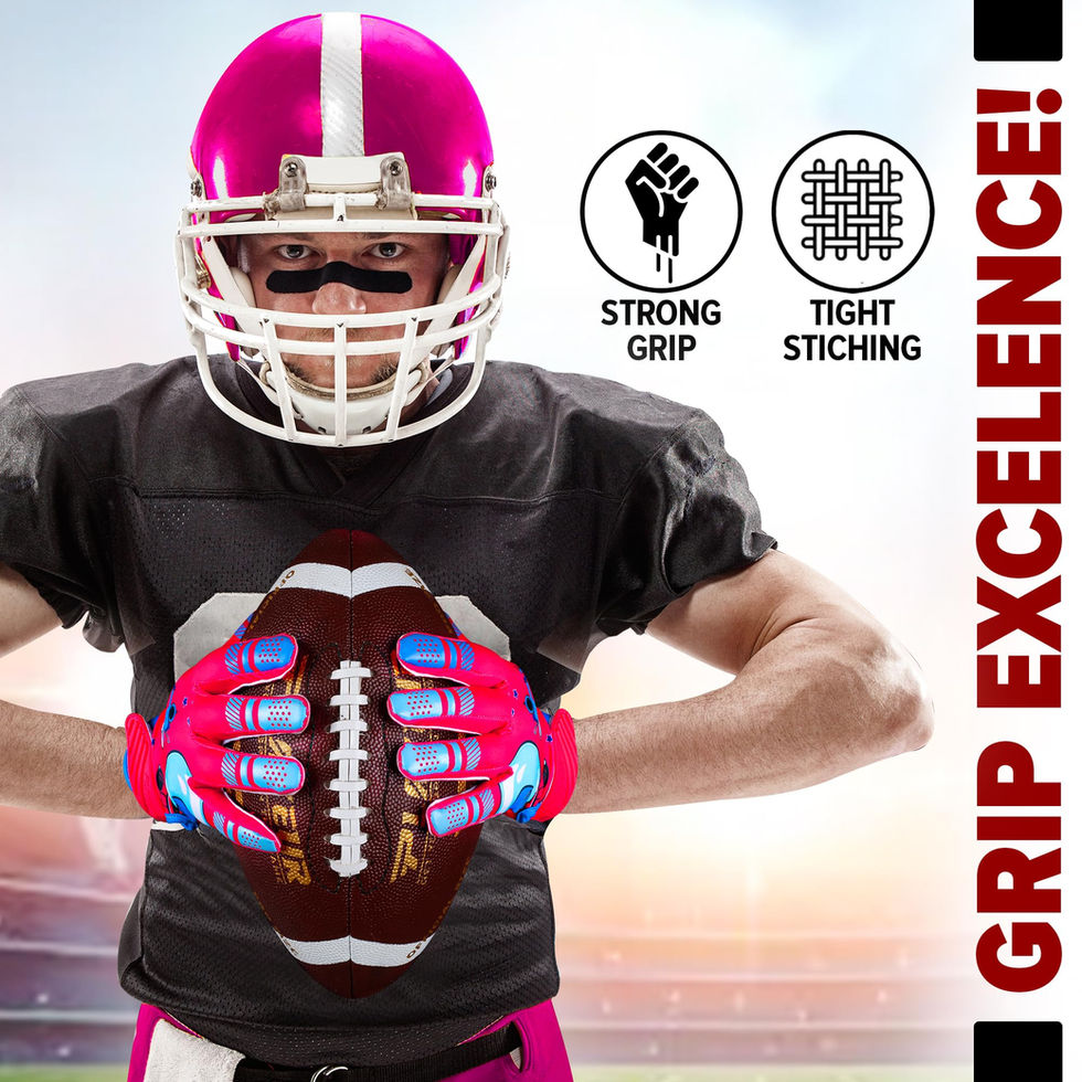 Precision Fit for Maximum Control : Our football gloves are engineered for a snug fit, adapting to your hand's unique shape, providing unmatched control for players at all levels, from youth football gloves to those designed for adults. Enduring Toughness Game After Game : Football gloves youth and football gloves adult crafted with high-tensile stitching and advanced materials that withstand the rigors of play, ensuring they won't peel or degrade, no matter the weather or frequency of use. Stay Gripped, Never Slipped : With a no-fail grip surface, our kids football gloves maintain tackiness game after game, guaranteeing that every catch sticks, perfect for those flag football matches and serious league plays alike. The Ultimate Gift of Game Day Glory : Whether they're just starting out or seasoned players, give the gift of top-tier performance with gloves that offer the perfect blend of fit, function, and flair — a thoughtful present for any football enthusiast. Trust in Our Legacy for Your Champion : Choose our brand for a gift that delivers confidence on the field. Trusted by parents and loved by players, our gloves are the go-to gear for moms seeking quality, durability, and that winning edge for their family athletes.