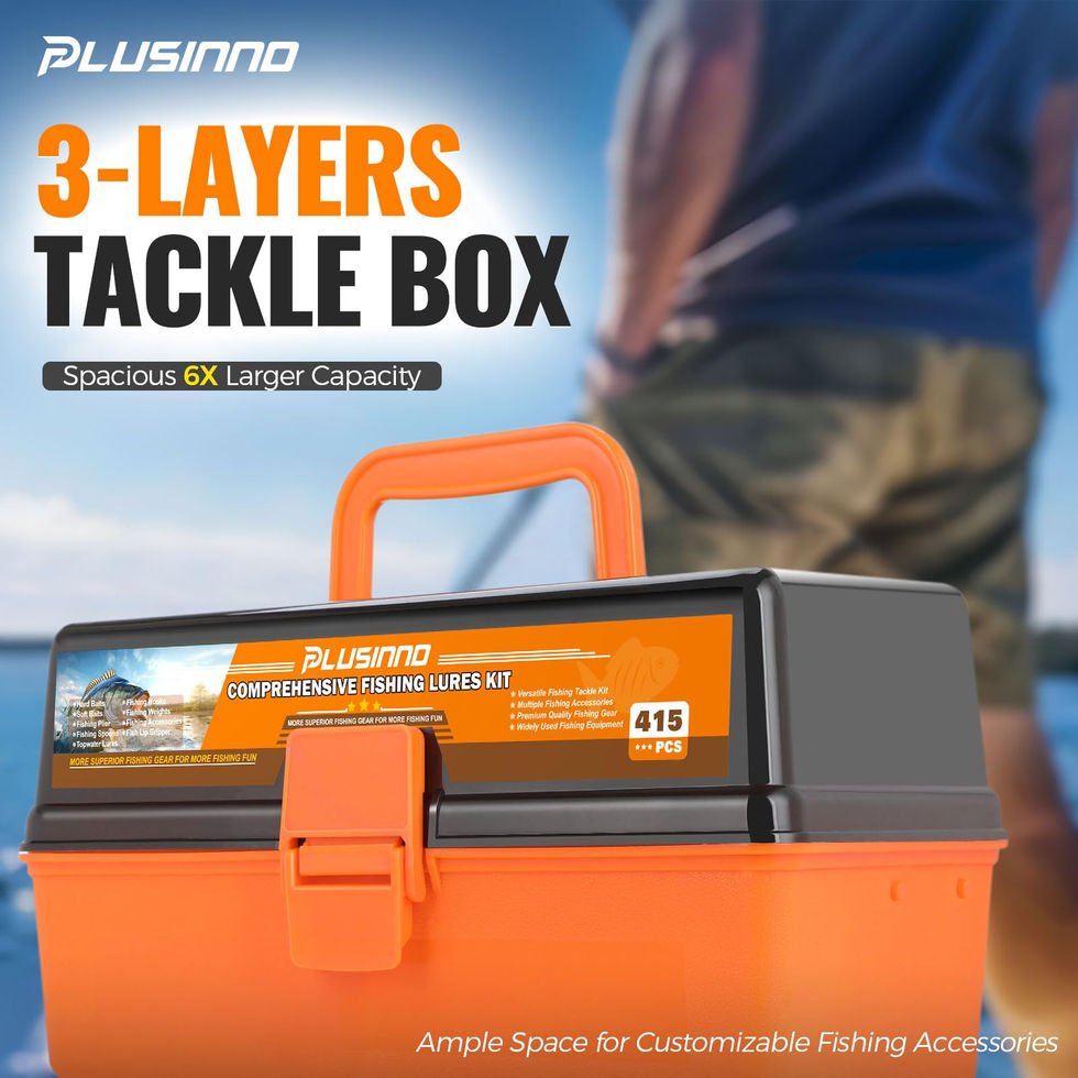 PLUSINNO Large 3 Layers Tackle Box with Tackle Included, 415Pcs