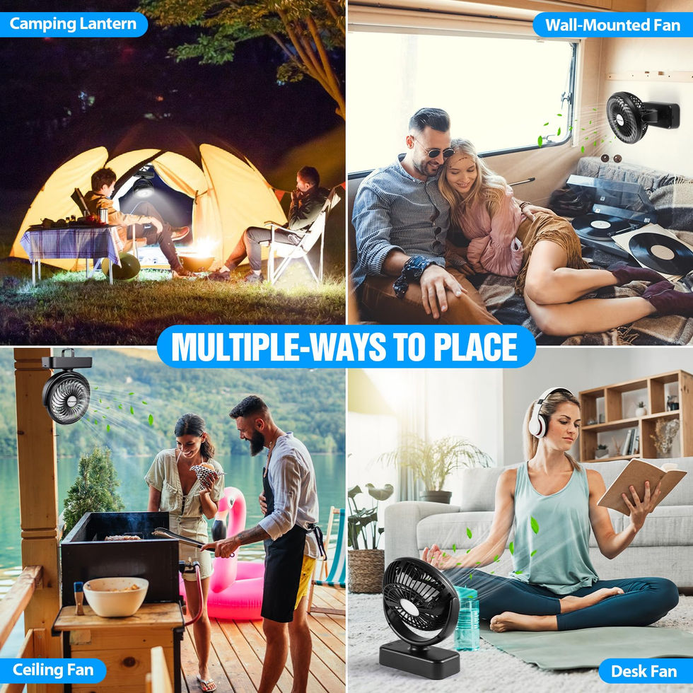 Portable Camping Fan with LED Lantern- 40H Work Time Rechargeable