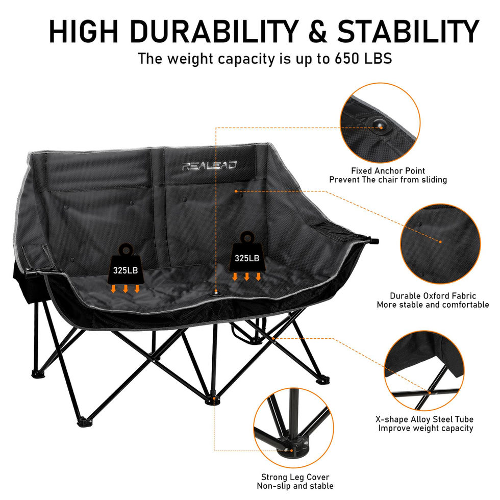 REALEAD Loveseat Camping Chair - Oversized Double Camping Chairs for
