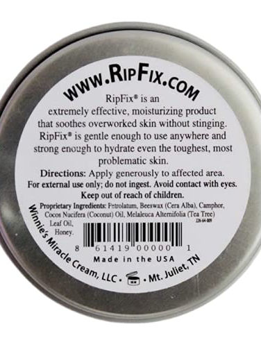 RipFix Hand Tear Repair Balm - RipFix is designed to prevent and treat rough, dry and ripped hands. Complete hand care system in one easy to carry travel tin. Rip Fix for hands helps heal rips faster! Who is RipFix for? - Rip Fix is great for gymnasts, weightlifters, rock climbers and anyone else that works hard with their hands. Our rip fix stopper tin is the perfect size to carry on the go Why Choose RipFix? - Rip Fix is the only hand repair balm on the market that is made by a family of athletes specifically for wod hand tears. We feel your pain and know how to fix it! Heal Hands While You Sleep - Ript and torn hands can be very painful. Tears and rips can also prevent you from having a solid workout. Ripfix will heal your wounds faster and get you back in the gym For a fresh rip, clean and cut all loose skin. Disinfect the wound before applying. Leave on the wound for several hours at a time; overnight works best! RipFix will speed up the recovery, getting you back to your training faster!