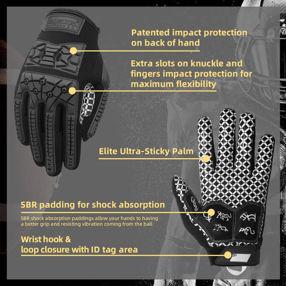 Seibertron Lineman 2.0 Padded Palm Football Receiver Gloves, Flexible