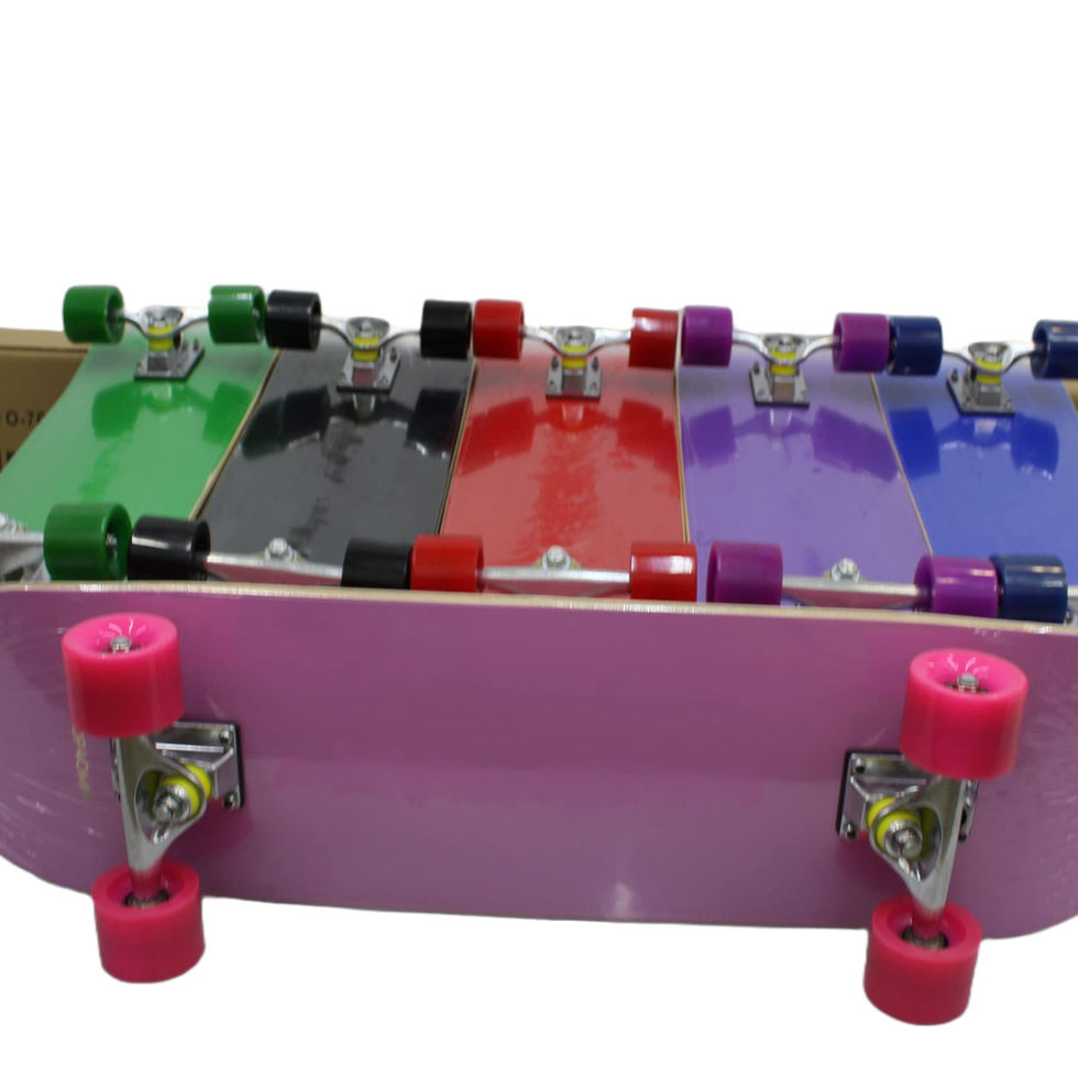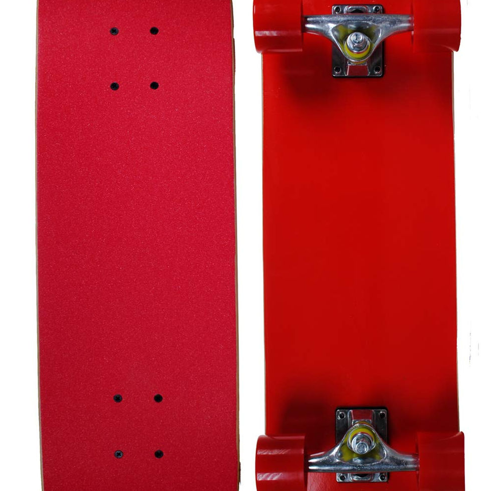 Comes Ready to Ride (No Assembly Required) Top of board is covered with matching grip tape Heavy Duty 5" aluminum trucks with matching premium solid wheels Length: 31.75 Inches Width: 8 inches Weight Limit: 175 lbs.