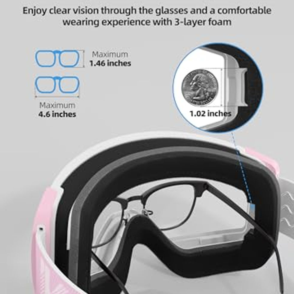 Ski Goggles, Interchangeable Magnetic Lens Snow Goggles, OTG Anti Fog