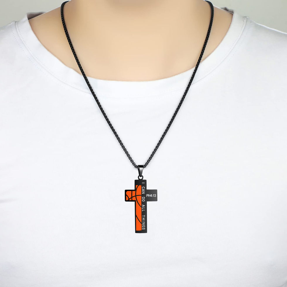 Susook Basketball Cross Necklace for Men Bible Verse I CAN DO All