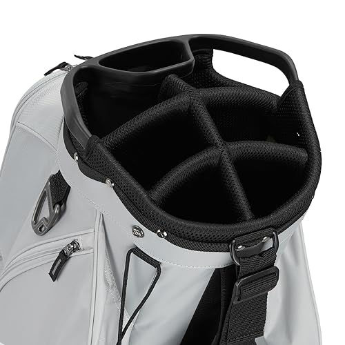 15 individual full length length club dividers, perfect for any golf cart at any course Additional front facing pockets for easier access and more storage New fade resistant yarn dyed fabric holds color longer with UV protected materials Built in putter protecting polymer patch; magnetic stash pocket Split side apparel pocket for more separation of storage in the Golf Bag
