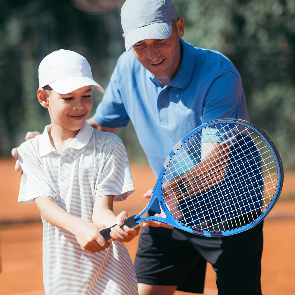 【Comfortable Grip】Measure your kid’s reach and select a child's tennis racket sized perfectly for their ergonomics. Ensure a fun experience without excessive strain on their muscles or joints. 【Lightweight Kids Tennis Racket】:Lightweight tennis racket is easy to hold and swing, bring your children a convenient sports experience. Easy for kids to handle and control. 【Durable Construction】The kids tennis racket with high quality aluminum frame, unique graphics, thick polyester strings, and a grippy neoprene handle.Sturdy materials ensure long-lasting use. 【8 in 1 VALUE PACK】 - the kids tennis racquet set comes with 2x 23" tennis rackets,3x Tennis Balls, 2x Handle Grips and 1x Portable Racket Cover 【For Beginner】Ideal for developing your child's interest in sports. Enjoy sports time with your child in your free time . Suggest for 7-10 years use.