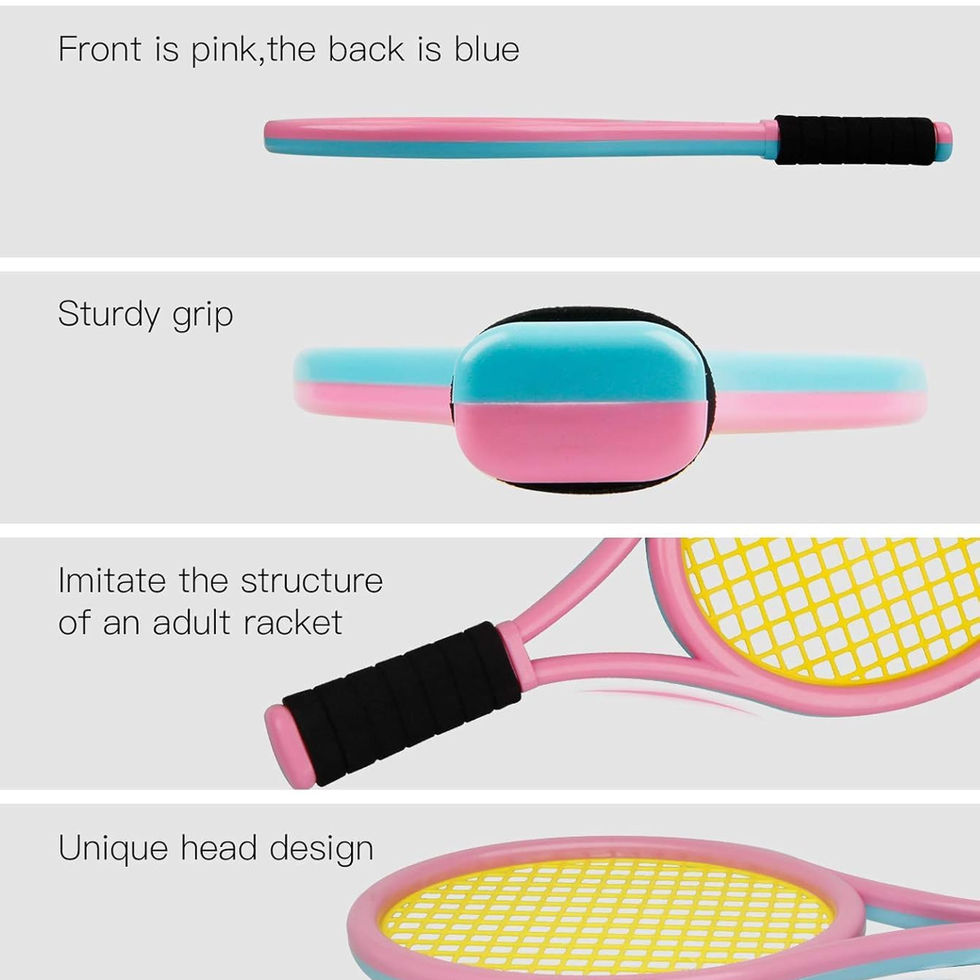 Product Include: 2 Rackets,3 Soft Balls, 1 Tennis ball and 2 badminton balls, It can be used as a tennis racket or a badminton racket to increase children's interest in sports. Sponge Wrapped Grip: The handle of the racket is wrapped in sponge, so that the fit for children is more comfortable. 17 Inches Racquet: The racket length is 17 inches, just fit the distance from the child’s wrist to ankle, So they won’t hit the ground. Lightweight: The weight of the racket is only 142g/0.31lb. Most children have little strength and cannot hold an adult racket, so this racket is just suitable for children. Stability&Durable:The racket is made of plastic, but its design principle is the same as that of an adult racket. Don't worry about the racket being easily damaged.