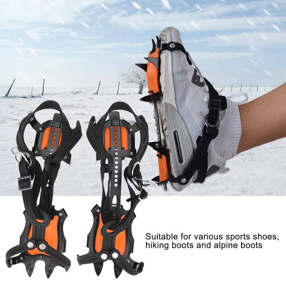 --ADJUSTABLE SIZE: Adopted with adjustable claw, you can adjust the length of the claw according to the length of your foot. WIDELY USED: It can be used with various sports shoes, hiking boots and boots. --10 TEETH: Designed with 10 teeth distribution, the ice crampons can increase the stationarity of walking. HIGH QUALITY: Made of high quality rubber and manganese steel, the ice is and wear-resistant. --GUARANTEE: If you are not satisfied with our product received, you can apply for unconditional return and refund within 180 days. In terms of any problem of this product, you can send emails as soon