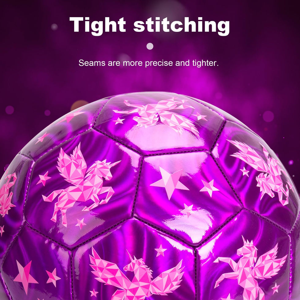 LONG-LASTING Design: Our soccer ball is designed with long-lasting and protection in mind. It has a sturdy leather shell, a thick soft sandwich layer to cushion hands and feet, and a reinforced internal rubber airbag for optimal air retention and shape retention. It is ready for game GLITTER & UNICORN: Our soccer ball is the perfect combination of glitter and unicorn! The flashy pink leather material is adorned with a unique unicorn design that sparkles in the sun. Whether your child is a beginner or a seasoned pro, they'll love kicking around this ball. Get your child excited about soccer with this one-of-a-kind ball EXCELLENT SEALING: Kids soccer ball has undergone inflation and deflation testing to ensure it is strong sealing, anti-leakage, and anti-water. It is easy to inflate within 2 minutes, making it a convenient choice for your child's soccer games SIZE 3 Soccer Ball: Our soccer ball is the official size 3, making it suitable for kids ages 3-8 to use for playing and training both indoors and outdoors, on grass, at the beach, or in the backyard. It is the perfect gift for kids for any occasion, such as Christmas, Easter, Children's Day, or a birthday HEALTH & ACTIVITY: Kids soccer is a great sport for promoting physical activity and health in children. It keeps kids active and energized, and is an excellent choice for a ball sport. Our soccer ball is designed specifically with children in mind. It's the perfect choice for any kid who loves soccer