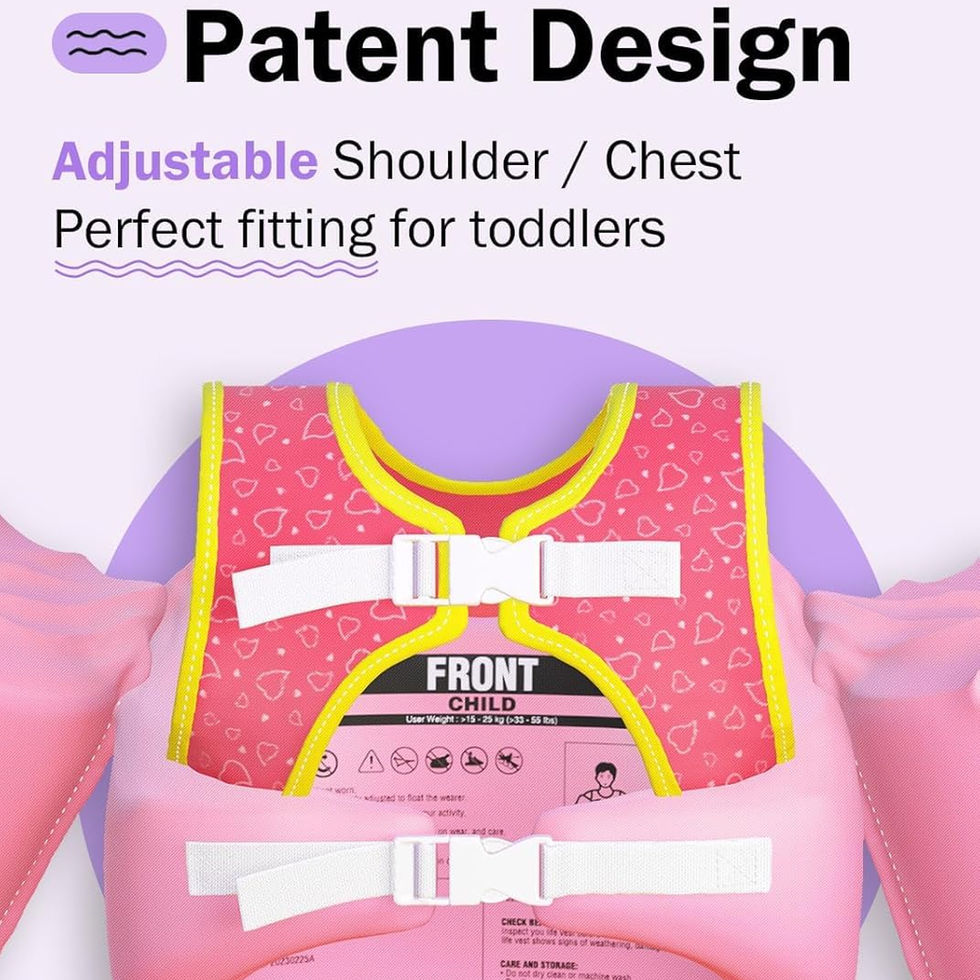 U.S. Coast Guard Approved Kids/Toddler Swim Vest Life Jacket Suggest for toddlers 2/3/4/5/6/7 years old Designed with a unique dual-buckle system for a secure, comfortable, and confident experience in the water Ensures a snug and comfortable fit for toddlers of various sizes Provides enhanced stability in the water, promoting confidence