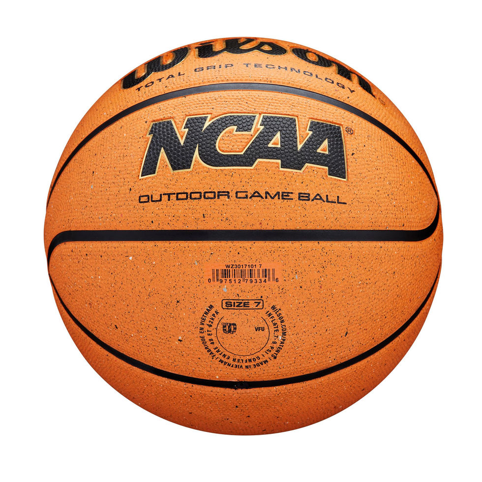 Wilson NCAA Outdoor Game Basketball - Orange, Size 6 - 28.5" Total Grip Technology: Provides enhanced softness and grip so more players can palm the ball Deep Channels: Deeper channels between the panels of the ball allow for more grip points and better ball control when dribbling and shooting. All Surface Partly Recycled Eco Cover: Cover material is composed of at least 30% recycled rubber, featuring extra cushioned layer that offers ultimate grip in all weather conditions