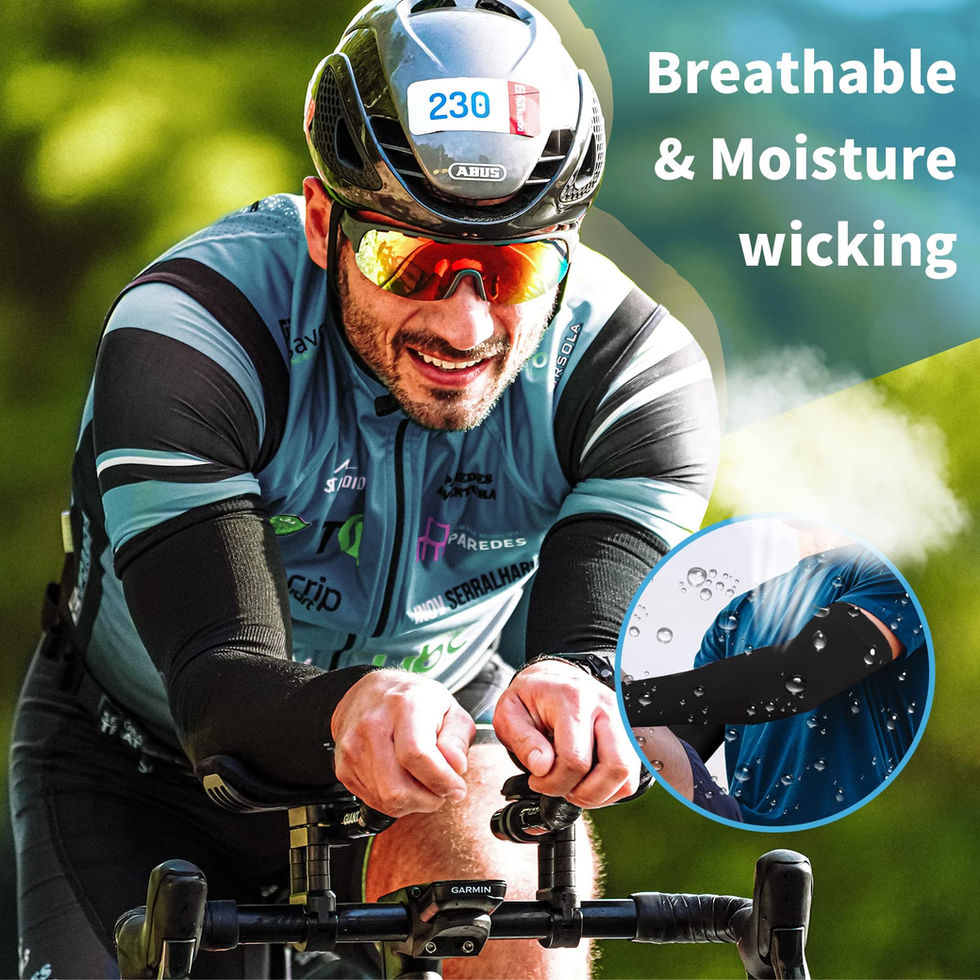 Cooling & UV Protection: Our UPF 50+ Arm Sleeves can block up to 98 percent of rays, which is a fantastic accessory to add to your sports gear wardrobe because they can help make your sports activities more enjoyable and free. Professional Accessory & Better Performance: These arm sleeves make you look professional! Not only do they look professional, but they also can improve your performance by helping maintain a lower body temperature in warm conditions. By keeping cool, you will be able to perform better in outdoor activities. Suitable for all Sports: Specially designed for outdoor activities, our lightweight arm sleeves keep you comfortable whether you're playing basketball, golf, angling, cycling, climbing, hiking, etc. Soft and Comfortable Fabric: Ensuring its performance in blocking up to 98 percent of rays, we also make our arm sleeves lightweight, breathable and sweat-wicking. These sleeves not only protect you from the sun, additionally, but they also help keep you cool in the noonday sun. Stretch to Fit and Washable: Made of 90% nylon+10% spandex, our sleeves are incredibly durable and stretchy. Machine wash and hang dry. Work for most people. Please feel free to contact us if you have any question.